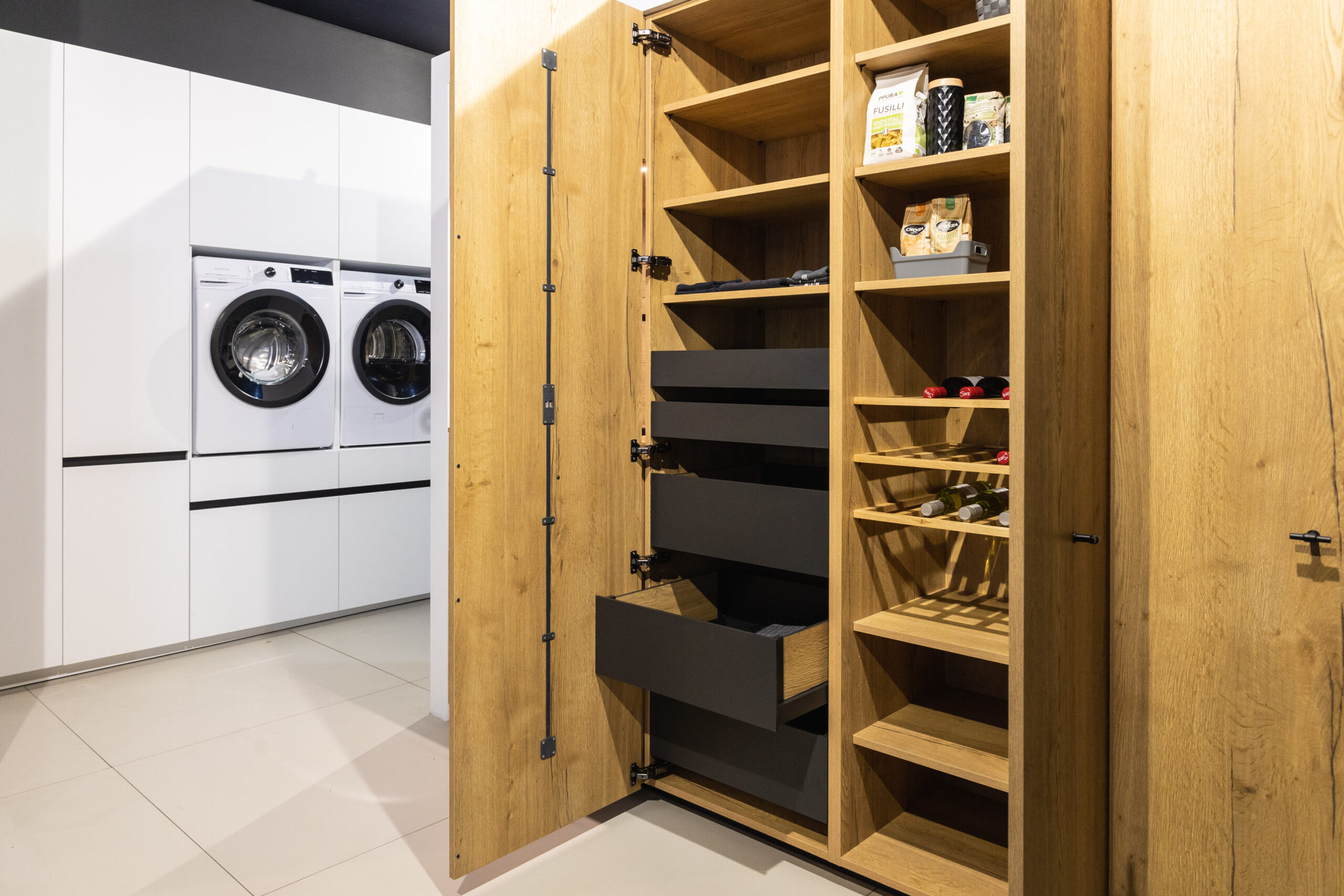 Een goed ingerichte bijkeuken maakt het verschil. Het is de ideale ruimte om functionele taken slim onder te brengen: van extra opbergruimte tot een plek voor de wasmachine, droger of strijkbenodigdheden. Met slimme kastruimte, duurzame materialen en een doordachte indeling houd je je keuken vrij van rommel én overzichtelijk. De bijkeuken wordt zo een volwaardige werkruimte waar gemak en orde samenkomen, zonder concessies te doen aan stijl en afwerking. Praktisch, verzorgd en helemaal in lijn met de rest van je interieur.